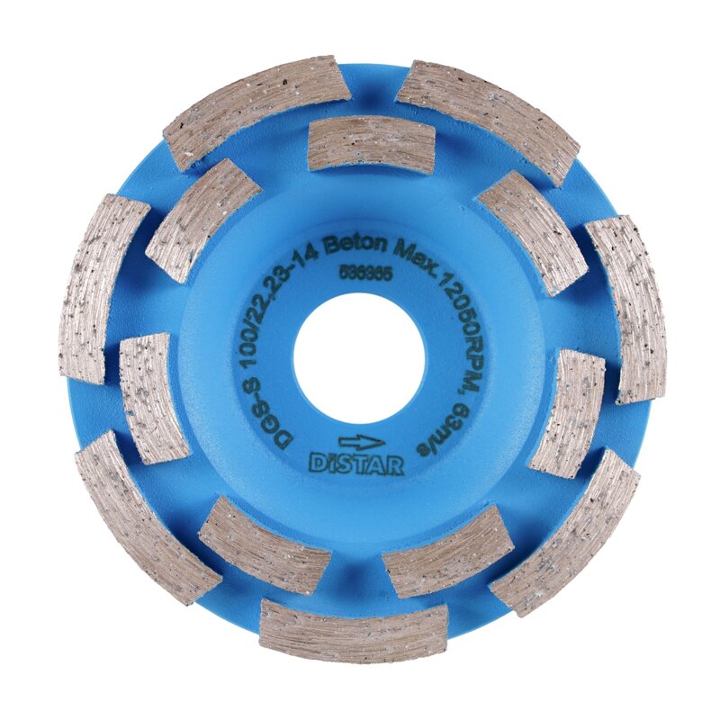 La mola a tazza ha due file di segmenti diamantati montati su un corpo in metallo leggero.