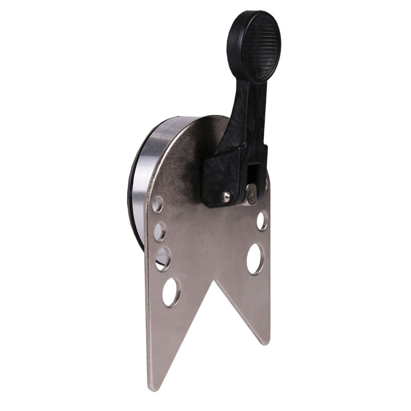 Il modello ha un design compatto, non occupa molto spazio. Consente di praticare fori fino a 70 mm di diametro. La dima dispone anche di fori aggiuntivi per un comodo centraggio di punte di piccolo diametro da 5 a 12 mm.