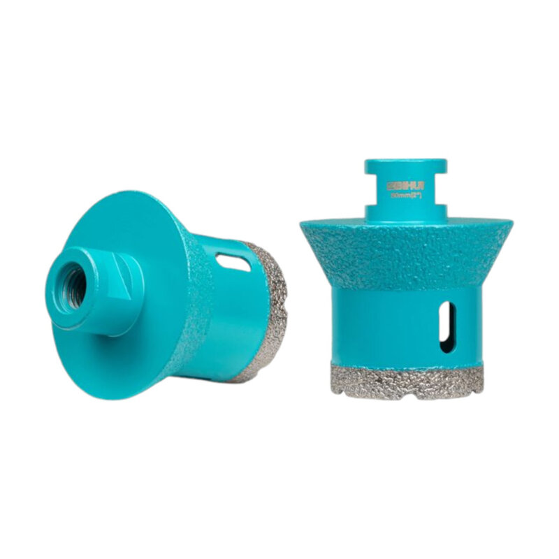 Le punte diamantate BIHUI Turbo cutter sono frese diamantate Premium professionali realizzate con tecnologia di sinterizzazione sottovuoto-liquido, che garantisce un'elevata velocità di perforazione e una lunga durata di servizio anche senza l'uso del raffreddamento ad acqua. La punta diamantata Bihui Turbo permette di eseguire due operazioni alla volta, forando e fresando il materiale in un solo passaggio con una sola corona. Ideale per fare fori per rubinetti, sifoni, ecc. Progettato per funzionare con una smerrigliatrice angolare (smerigliatore) alla massima velocità, che fornisce raffreddamento ad aria, oltre che tramite un adattatore con un trapano o un cacciavite ALE!! Poiché la velocità dei trapani è bassa e il flusso d'aria trascurabile, lascia riposare le corone o usa un raffreddamento aggiuntivo con acqua o cera refrigerante.