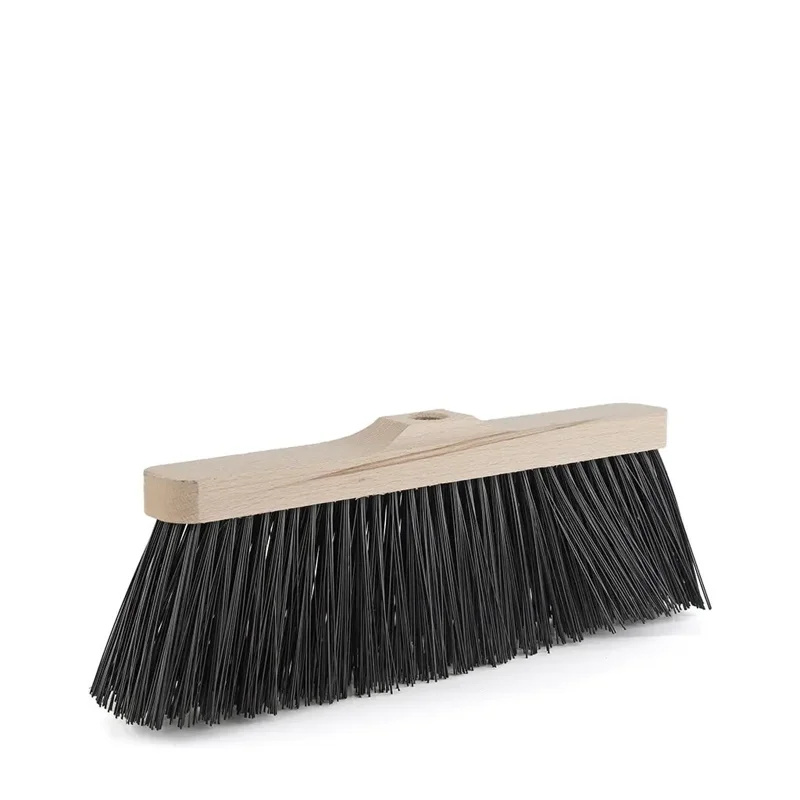 Scopa industriale 35 cm con setole dure e supporto in legno, dotata di filettatura per l’avvitamento del manico. Senza manico.