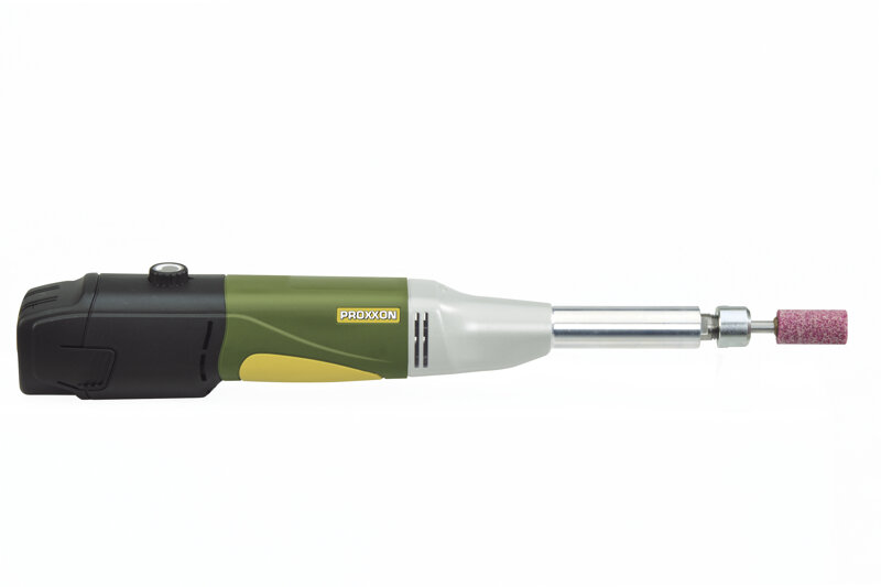 Collo mandrino lungo 75 mm per la rettifica interna e in posti di dif-ficile accesso. Elevata potenza con una costruzione compatta: con soli 800 g è decisamente più leggero delle smerigliatrici diritte clas-siche. Pinza porta utensili ER11.In dotazione una moletta in corin-done speciale grana 36, batteria agli ioni di litio Li/A2 e caricabatterie rapido LG/A2.